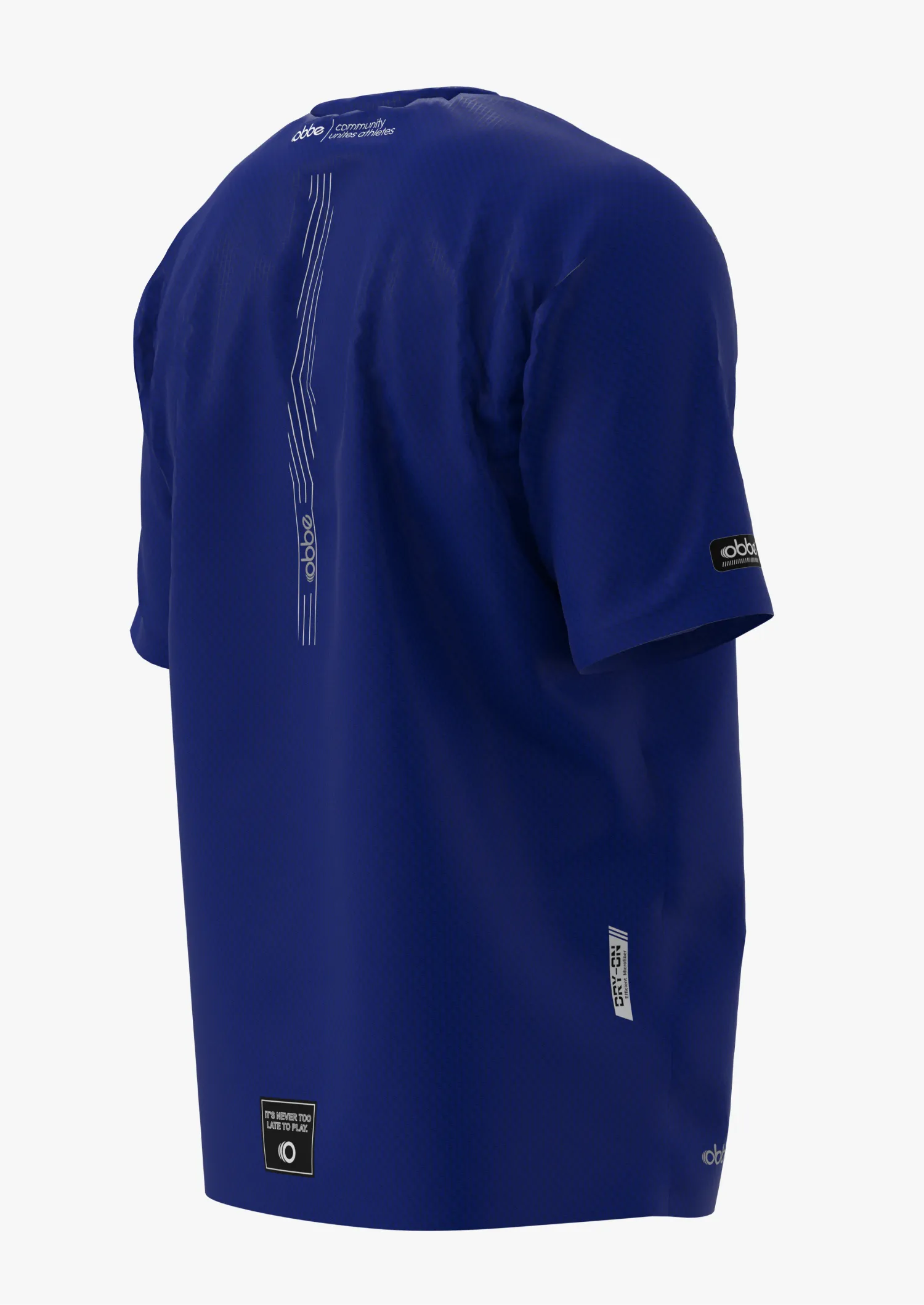 Camiseta de alto rendimiento para caballero de corte ajustado y moderno en color azul con detalles en gris claro.