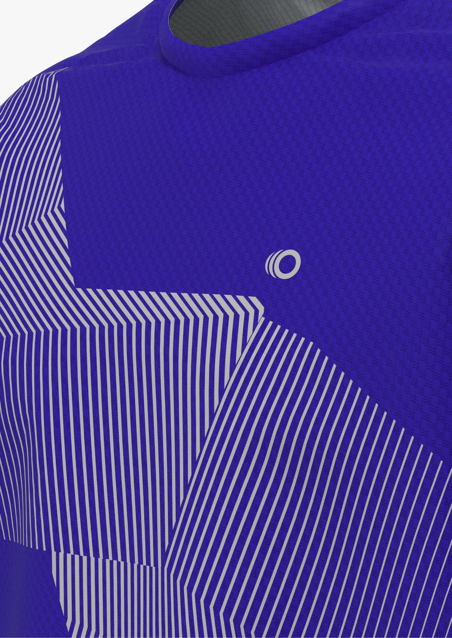 Camiseta de alto rendimiento para caballero de corte ajustado y moderno en color púrpura con detalles en gris claro.