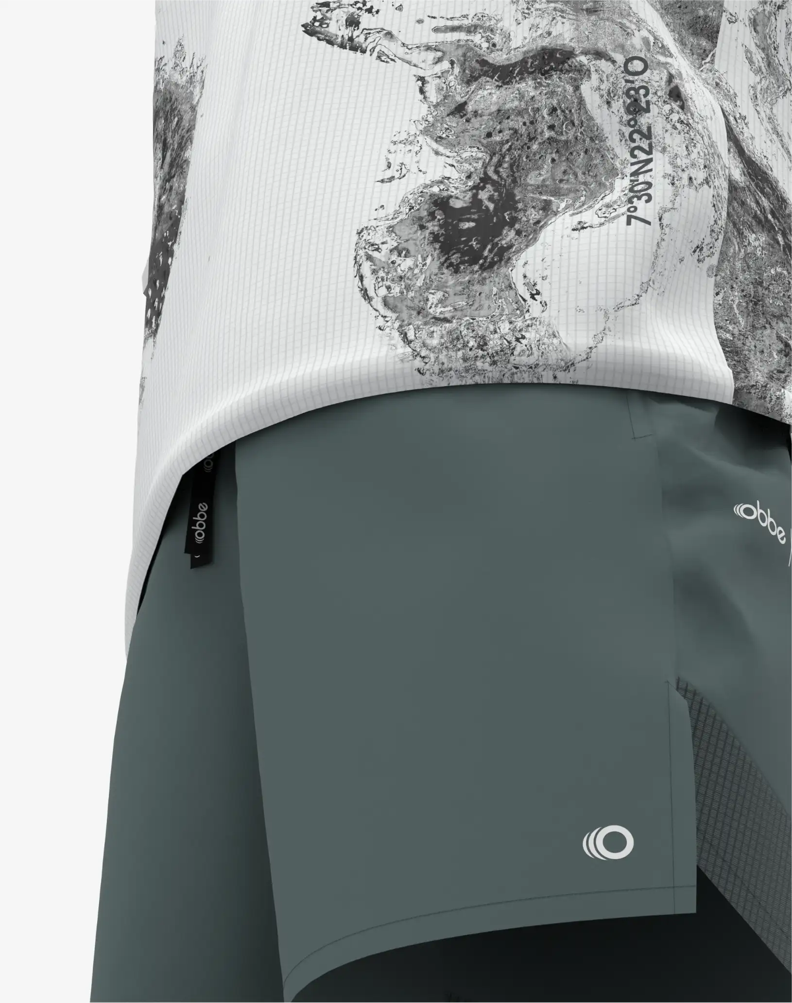 Short de alto rendimiento para caballero de corte ajustado y moderno en color gris con detalles en verde flúor.