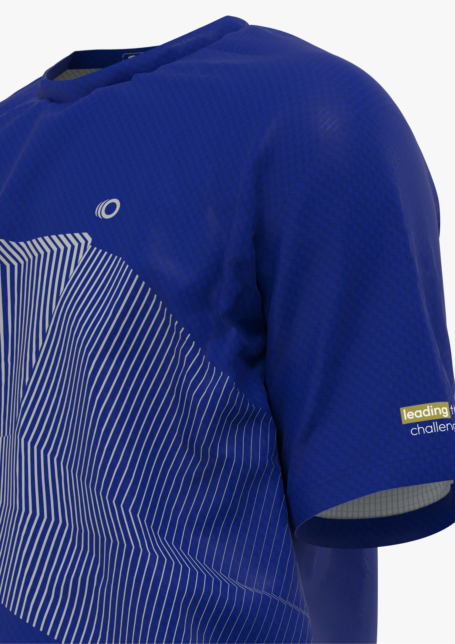 Camiseta de alto rendimiento para caballero de corte ajustado y moderno en color azul con detalles en gris claro.