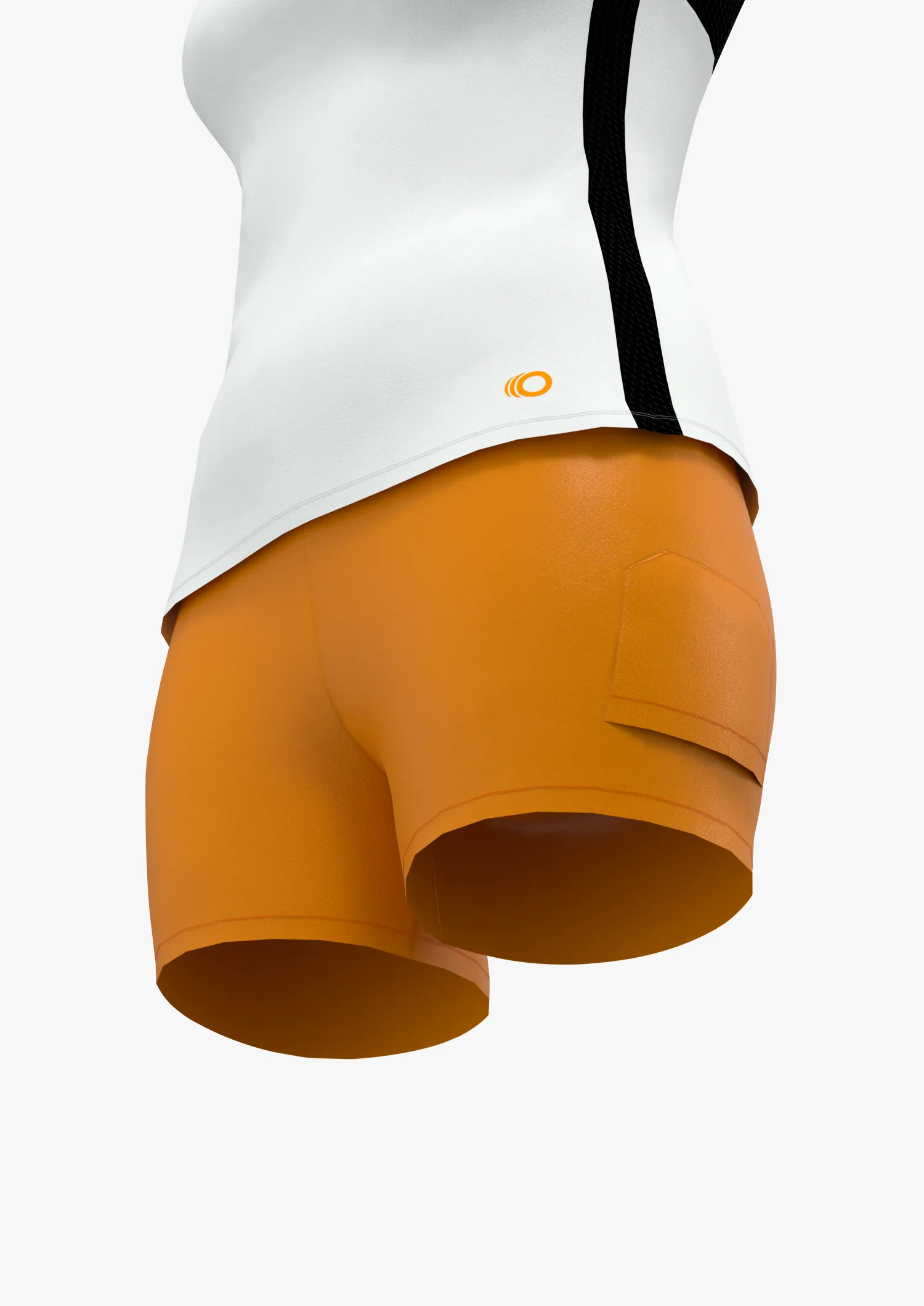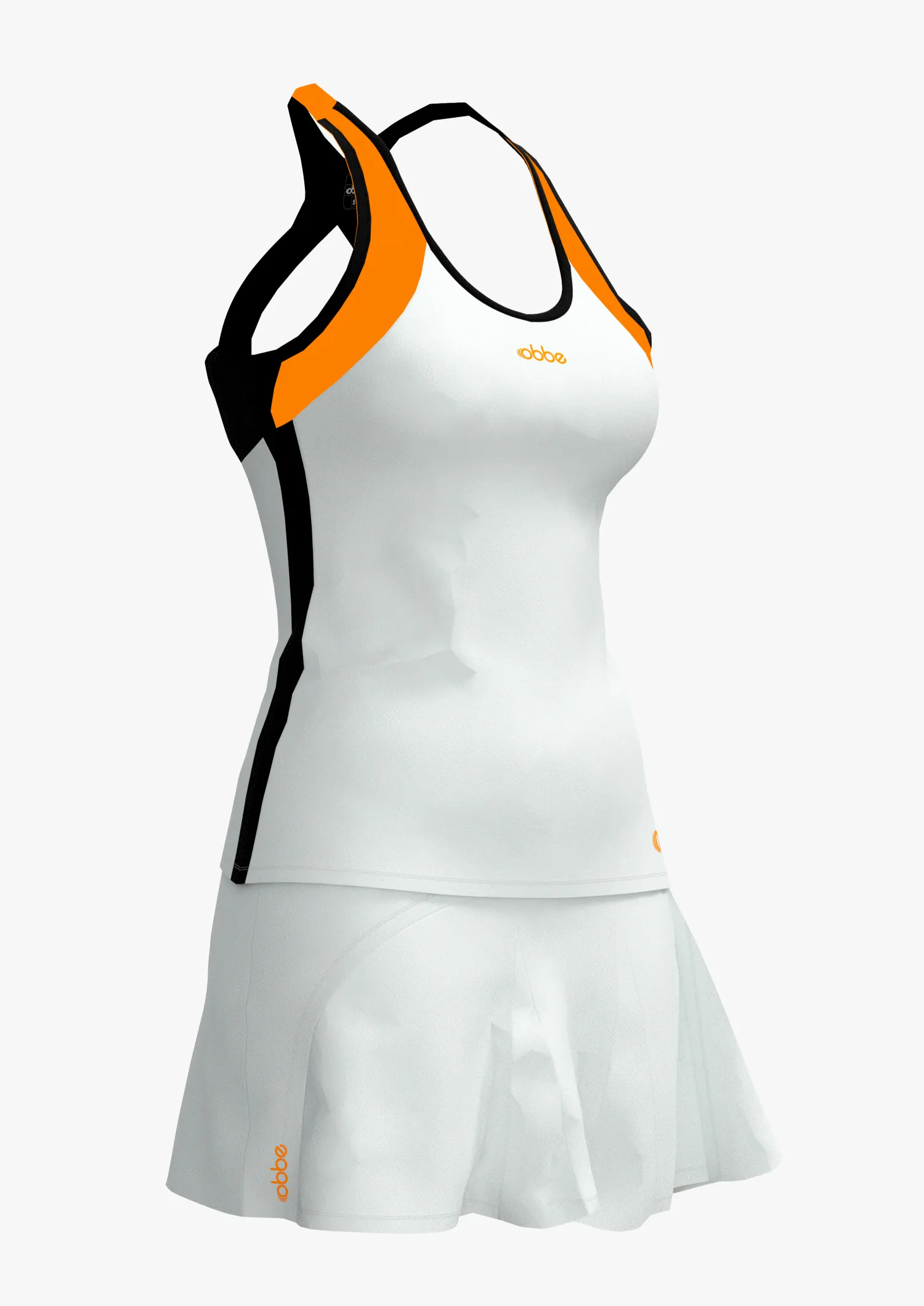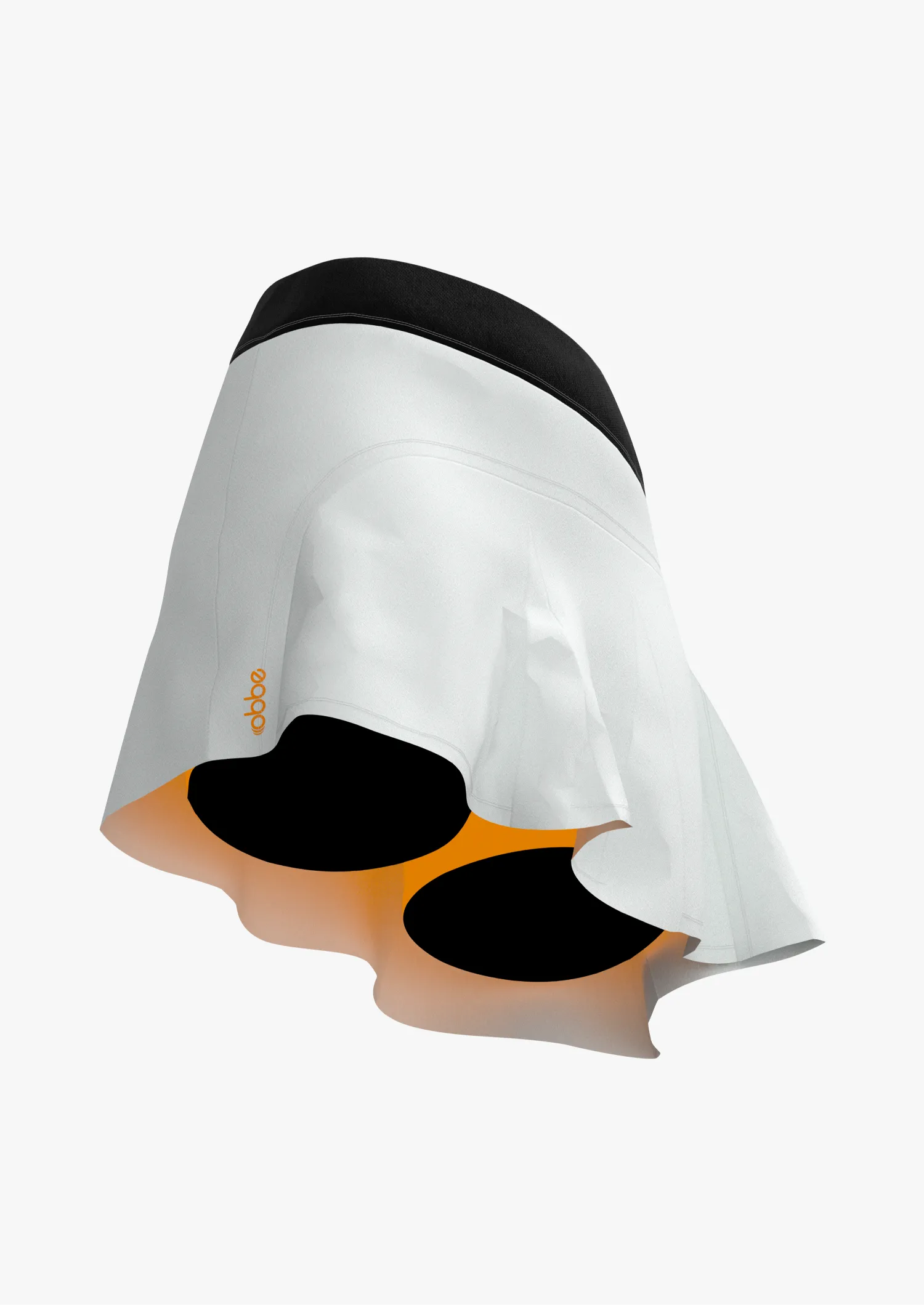 Falda de alto rendimiento para mujer color blanco-negro con short naranja interior con bolsillo ‘guarda pelotas’ y detalles en vinyl print.